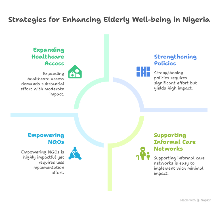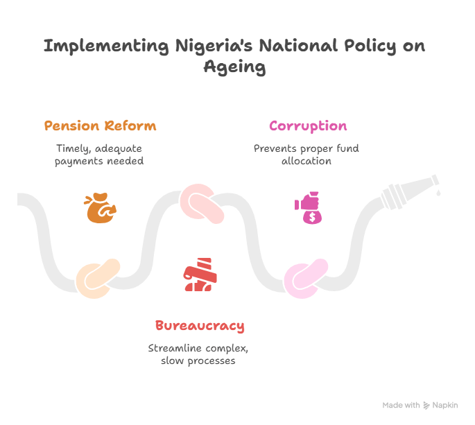 Nigeria already has a National Policy on Ageing (2023), but like many policies, implementation is the challenge. The government must prioritize pension reform, healthcare subsidies, and community-based elderly care programs. Reliable social protection systems would ensure that seniors no longer suffer from delayed pensions, unpaid benefits, or lack of healthcare access.